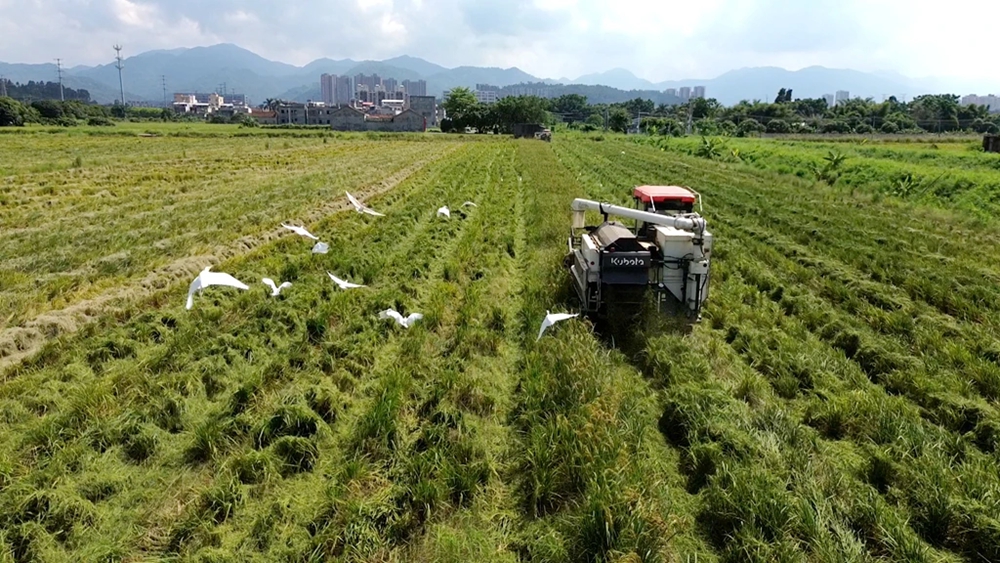 9月19日,在仲愷高新區(qū)瀝林鎮(zhèn)埔心村的稻田里,數(shù)臺(tái)中型收割機(jī)來(lái)回穿梭,將顆粒飽滿、黃澄澄的稻谷盡收其中。