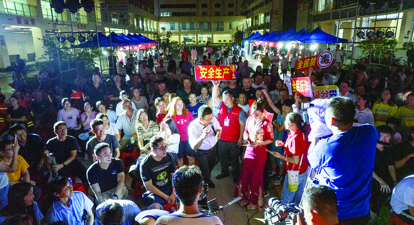 9月23日,文化劇場走進中韓(惠州)產(chǎn)業(yè)園起步區(qū)集中配套一期廣場,為產(chǎn)業(yè)工人帶來一場視聽盛宴。晚會在社會組織黨委自主創(chuàng)作的黨建之歌《先鋒促發(fā)展》中拉開序幕;快板《反詐先鋒隊》說出反電信詐騙的決心;男女合唱《不忘初心》展現(xiàn)出社會組織黨組織奮發(fā)向上,不忘初心、牢記使命,砥礪前行的誓言……一個個精彩的節(jié)目讓現(xiàn)場觀眾應(yīng)接不暇,掀起一陣又一陣高潮。