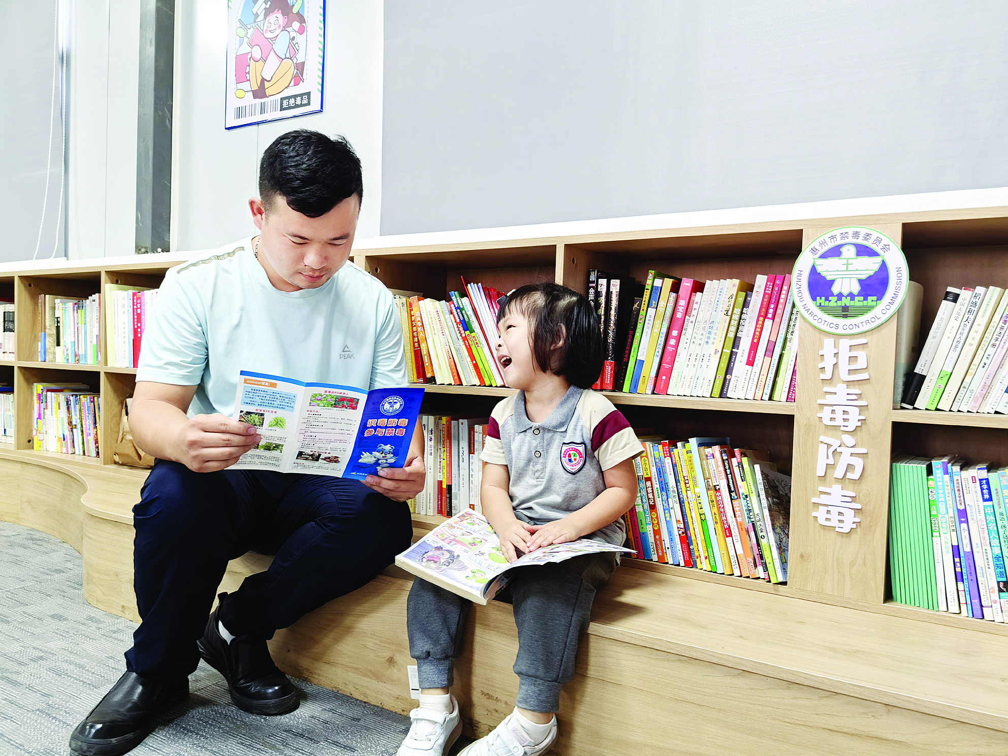 不遠(yuǎn)處的瀝林鎮(zhèn)迭石龍村新時(shí)代文明實(shí)踐站二樓是一個(gè)禁毒文化閱覽室,里面結(jié)合禁毒元素布置了禁毒圖書、禁毒展示柜等禁毒宣傳載體。迭石龍村每隔一段時(shí)間就召集學(xué)生在此開展禁毒讀書會(huì)等活動(dòng)。