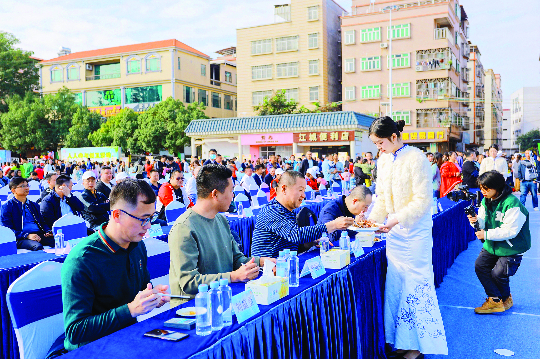 除了碌鵝美食交流賽,當(dāng)天的另一特色就是長桌碌鵝宴,大家共享“舌尖上的美食”,共品瀝林碌鵝味覺盛宴。此外,活動(dòng)現(xiàn)場(chǎng)還設(shè)置了瀝林本土特色農(nóng)產(chǎn)品展示區(qū)、特色美食區(qū)以及套鵝游戲區(qū),游客沉浸式體驗(yàn)瀝林美食文化。“碌鵝很美味,套鵝游戲很好玩,還有很多好吃的,非常棒!币贿吰穱L美食一邊玩游戲的游客對(duì)此次碌鵝節(jié)豎起了大拇指。
