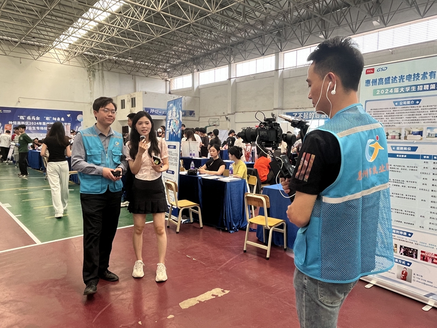 “哪些職場禮儀是需要我們?nèi)プ⒁獾?”“如果被企業(yè)錄用,與企業(yè)簽訂書面勞動合同時需要注意哪些事項?”……活動現(xiàn)場,除了直播,仲愷高新區(qū)就業(yè)驛站工作人員還擺攤向?qū)W生們傳授“求職經(jīng)”。