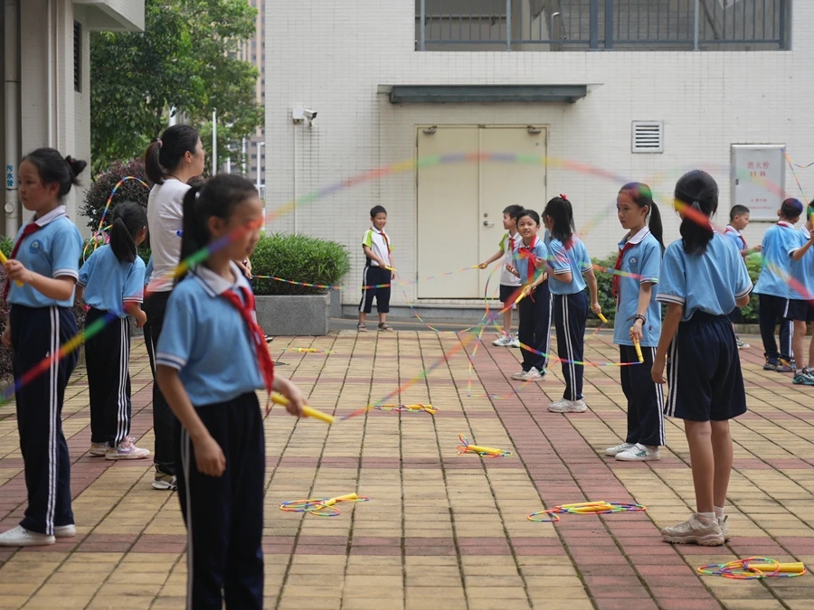 仲愷高新區(qū)第七學(xué)校學(xué)生上體育課。