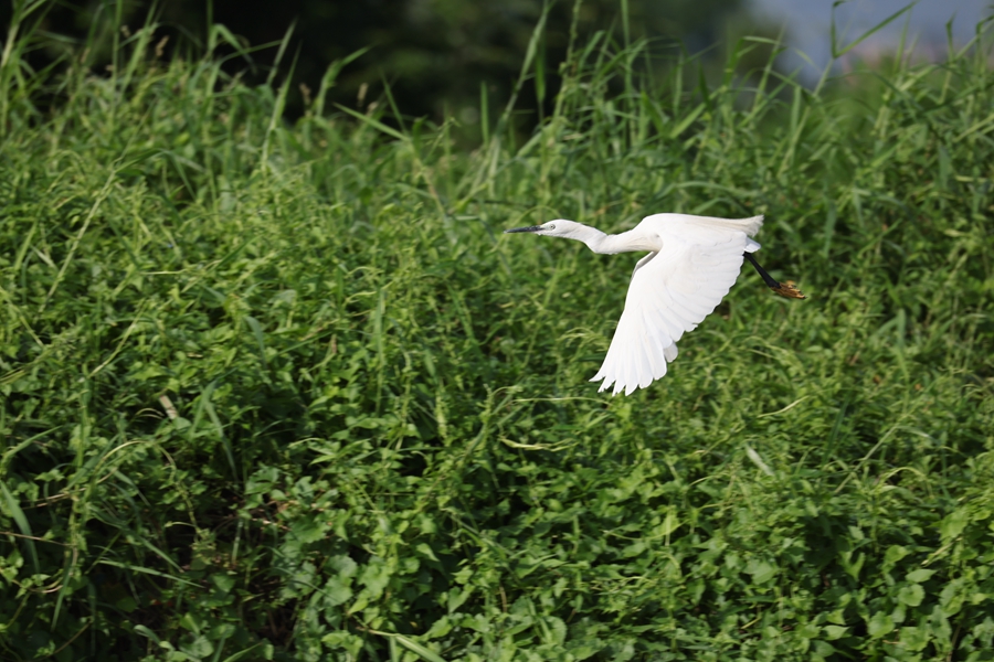 鏡頭下,紫水雞從岸邊的蘆葦叢飛向位于平塘湖中心的鳥類棲息地。振翅之間,紫藍色的羽毛在陽光下閃耀出金屬般的光澤!疤疫\了,這是今年第二次拍到紫水雞了!变䥽覞竦毓珗@管護中心相關(guān)負責(zé)人說。除了紫水雞,記者還發(fā)現(xiàn)有白腰文鳥、黃腹山鷦鶯、蒼鷺、白鷺、褐翅鴉鵑、黑水雞等珍稀鳥類。天藍、地綠、水清、鳥飛,共同繪就了潼湖濕地之美。