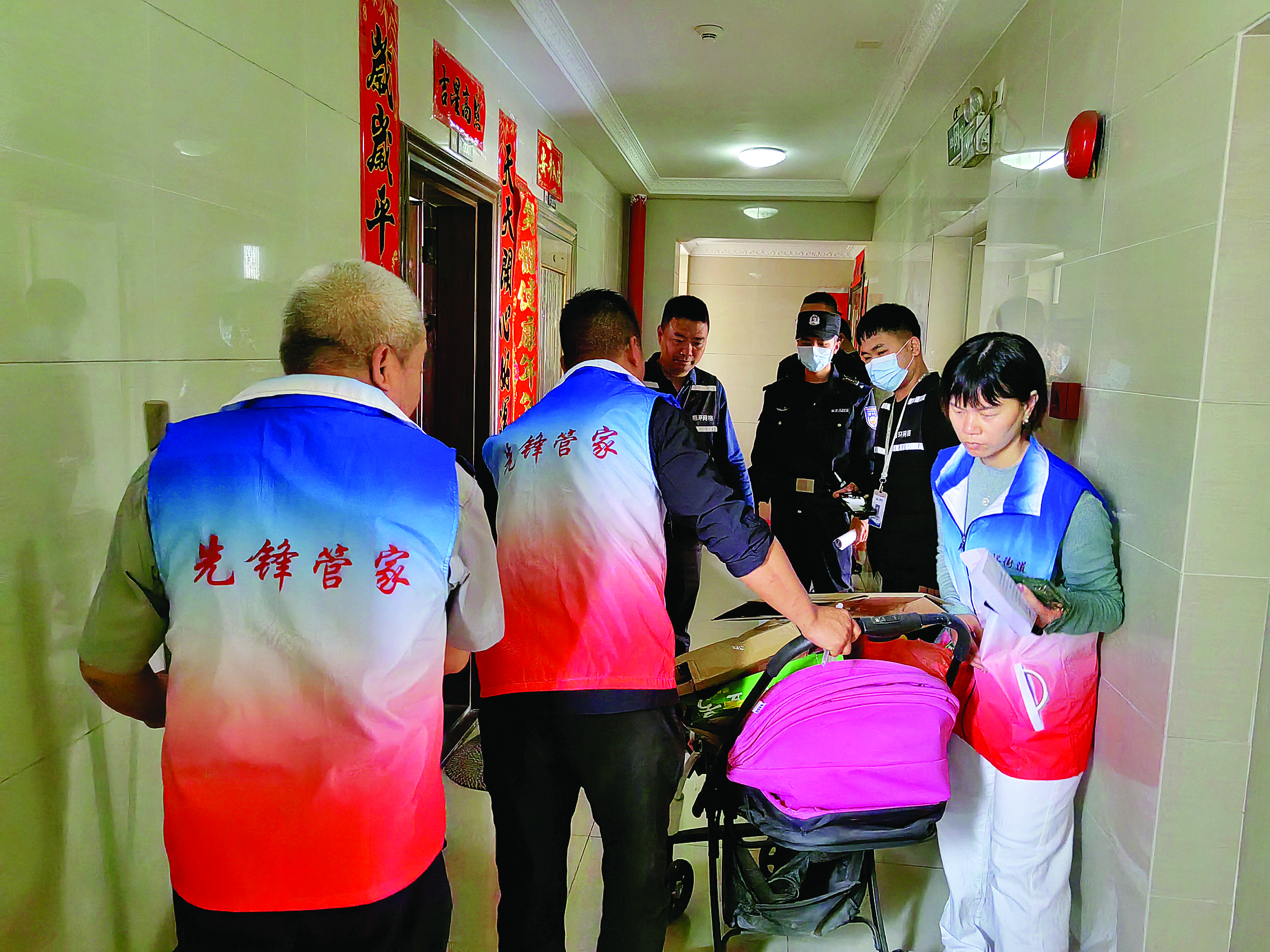 “先鋒管家”和網(wǎng)格員共同清理安全通道。