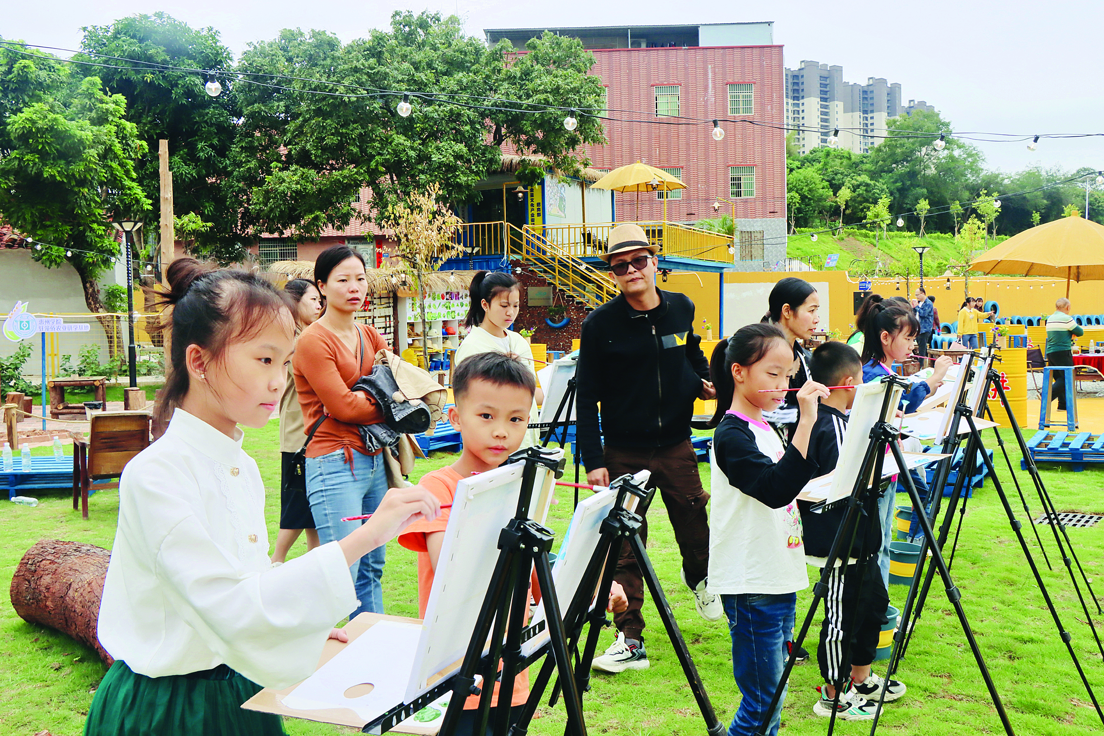 每到假期,在仲愷高新區(qū)潼僑鎮(zhèn)金星村的金星親子園里,游人如織,家長們帶著孩子在菜園采摘,在池塘垂釣,興之所至,還來一場野炊……盡享鄉(xiāng)間樂趣。