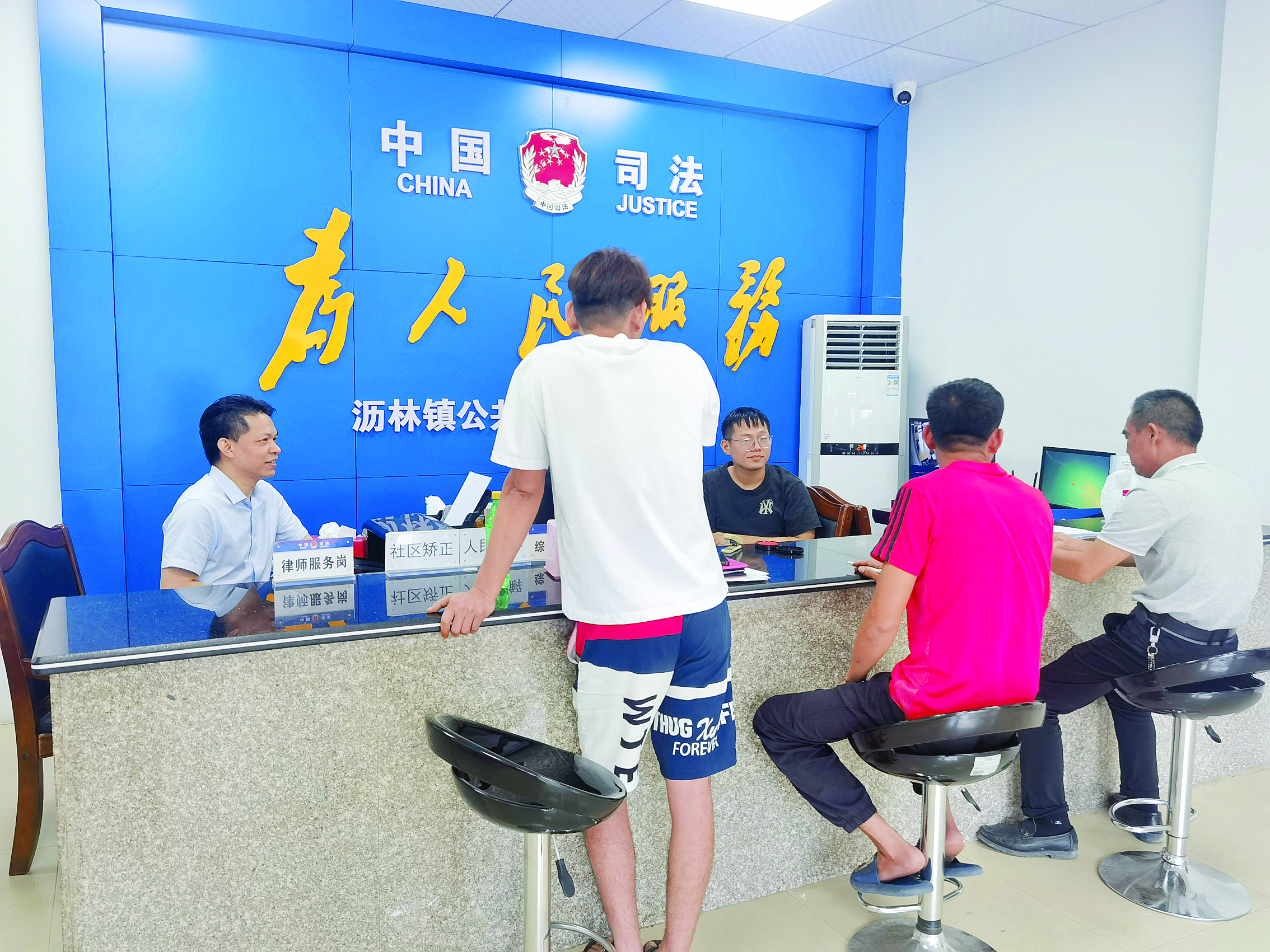 瀝林鎮(zhèn)綜治中心工作人員為群眾調(diào)解糾紛,維護(hù)權(quán)益。