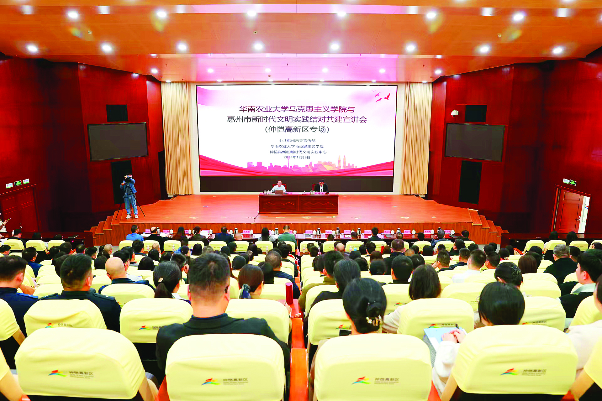 走上講臺(tái)釋理論,深入基層談發(fā)展……為深入學(xué)習(xí)貫徹黨的二十屆三中全會(huì)精神,持續(xù)擦亮“仲愷星火”理論宣講工作品牌,12月9日,華南農(nóng)業(yè)大學(xué)馬克思主義學(xué)院與惠州市新時(shí)代文明實(shí)踐結(jié)對(duì)共建宣講會(huì)暨仲愷高新區(qū)學(xué)習(xí)貫徹黨的二十屆三中全會(huì)精神專題宣講在仲愷舉行。