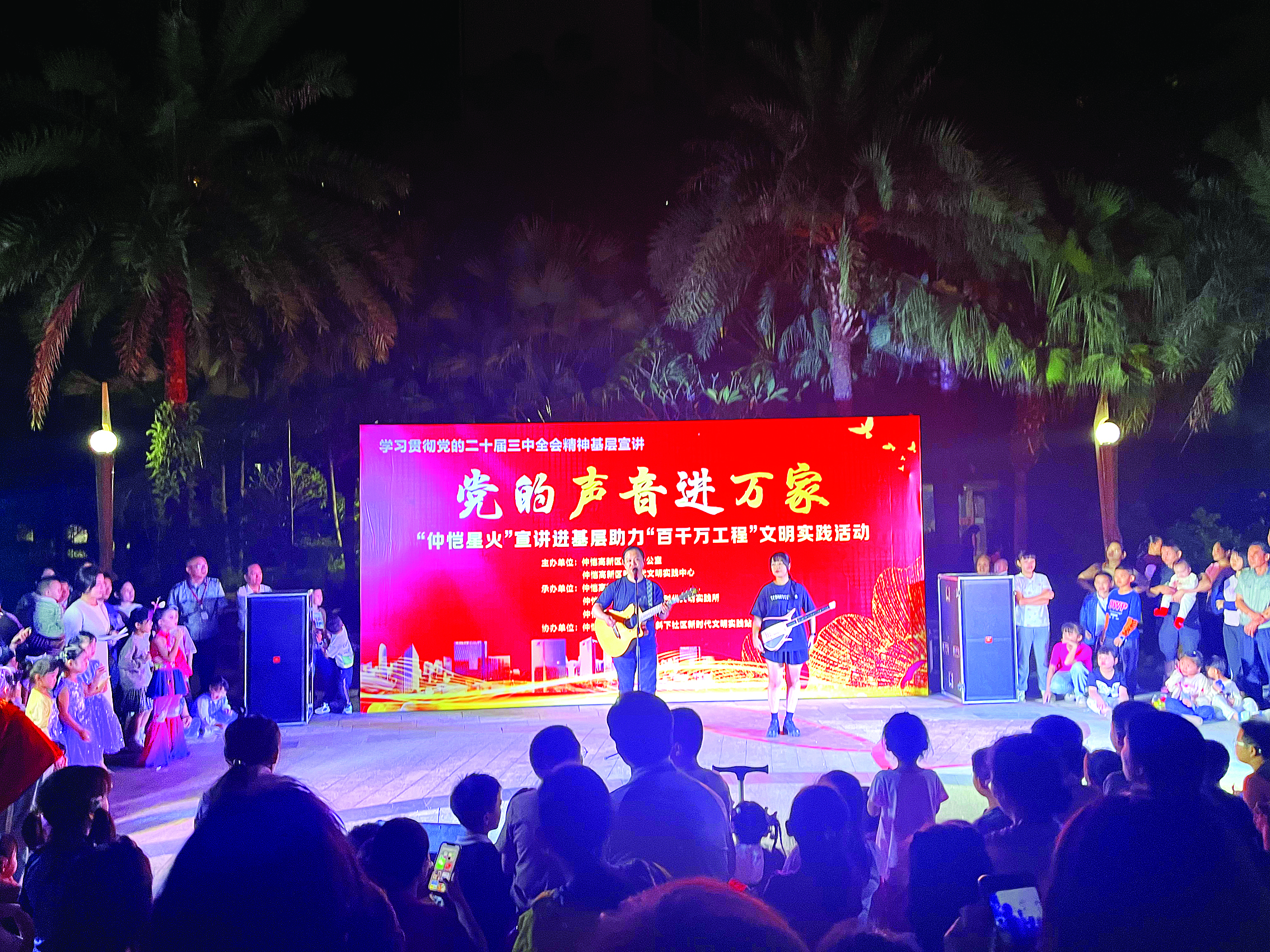 除了邀請(qǐng)專家授課,今年以來,仲愷高新區(qū)持續(xù)提升“仲愷星火”理論宣講計(jì)劃的覆蓋面和影響力,通過舉辦“仲愷星火”理論宣講比武活動(dòng),建立講師庫及特色宣講課程庫,組建10支“仲愷星火”特色理論宣講隊(duì),打造16家“星火講堂”,積極探索“宣講+”模式,用小切口展現(xiàn)“大主題”、用“小故事”講述“大道理”。如“仲愷星火”宣講員蘇雨楠以《走進(jìn)新時(shí)代》《大中國》為主題,通過音樂宣講的方式,巧妙地將愛國歌曲與黨的歷史相結(jié)合,讓群眾在輕松愉快的氛圍中受到啟發(fā);情景劇《仲愷風(fēng)尚有傳承》和小品《此處安心是吾鄉(xiāng)》等節(jié)目精彩紛呈;鶎永碚撔v是打通黨的創(chuàng)新理論傳播“最后一公里”的重要渠道。宣講隊(duì)以“講、寫、唱、演、展”等群眾喜聞樂見的形式,深入企業(yè)、村(社區(qū))、學(xué)校等基層舉辦“黨的聲音進(jìn)萬家”“聽黨話、感黨恩、跟黨走”“強(qiáng)國復(fù)興有我”等各類主題宣講活動(dòng)300余場,參與群眾3萬余人次,讓理論宣講更有“煙火氣”、更“接地氣”。
