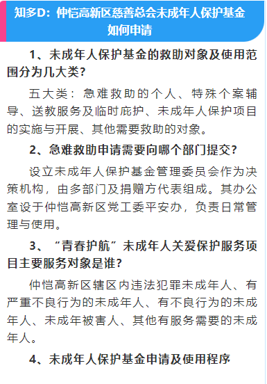 據(jù)介紹,未成年人保護(hù)基金由仲愷高新區(qū)黨工委平安仲愷建設(shè)領(lǐng)導(dǎo)小組辦公室統(tǒng)籌,在該區(qū)慈善總會(huì)設(shè)立,是該區(qū)落實(shí)國(guó)家法律要求和工作部署的重要舉措。重點(diǎn)用于未成年人臨時(shí)生活救助、醫(yī)療救助、特殊個(gè)案輔導(dǎo)服務(wù)、送教服務(wù)及臨時(shí)庇護(hù)、未成年人保護(hù)項(xiàng)目的實(shí)施和開展,以及其他需要救助的未成年服務(wù)對(duì)象。其中,“青春護(hù)航”未成年人關(guān)愛保護(hù)服務(wù)項(xiàng)目是未成年人保護(hù)基金資助的對(duì)象之一。該項(xiàng)目結(jié)合仲愷高新區(qū)的實(shí)際情況,計(jì)劃通過提供個(gè)案服務(wù)以及開展外展宣傳活動(dòng)來實(shí)施服務(wù)。