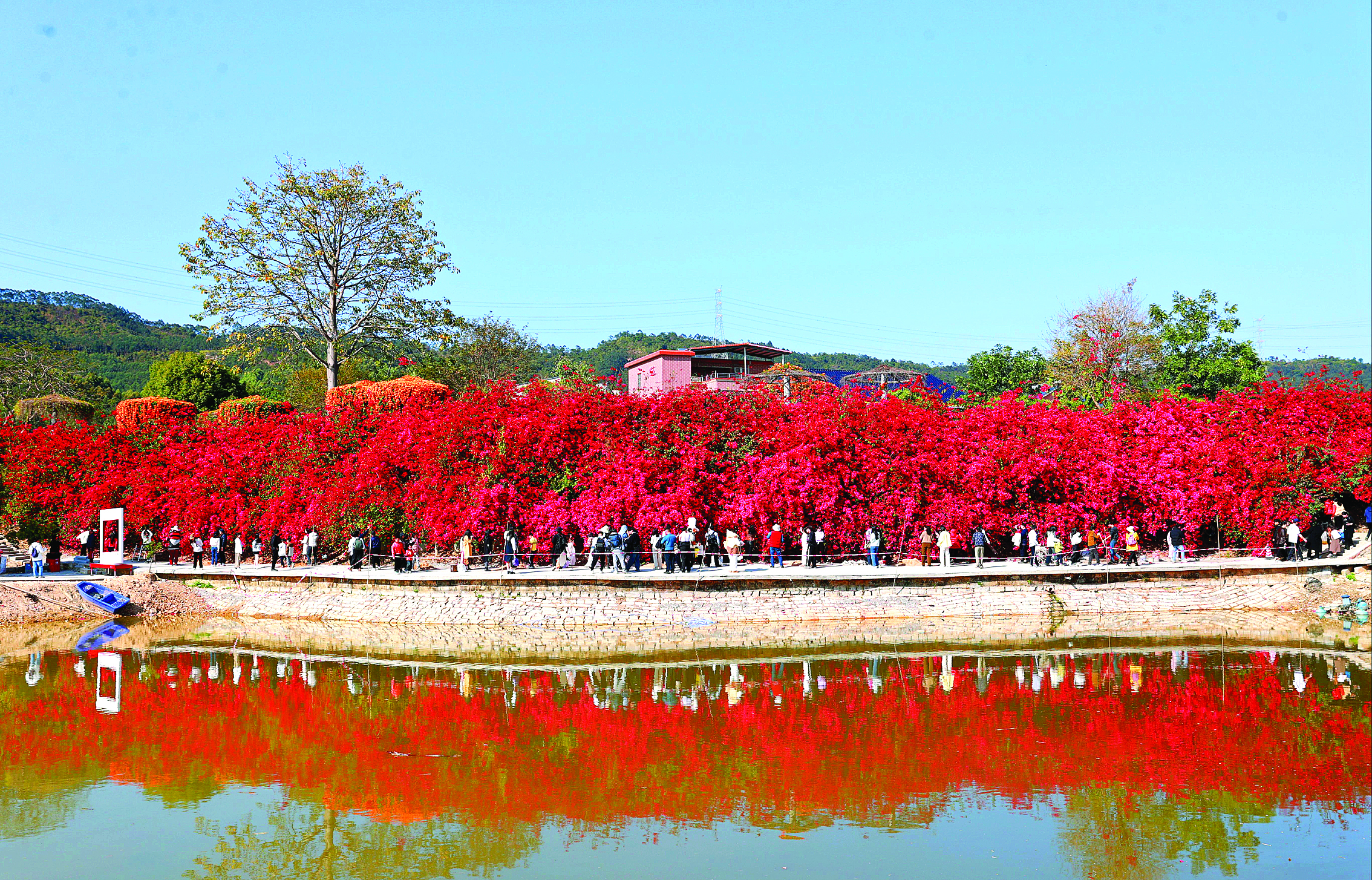 潼湖黃屋村“三角梅瀑布”吸引眾多游客打卡。