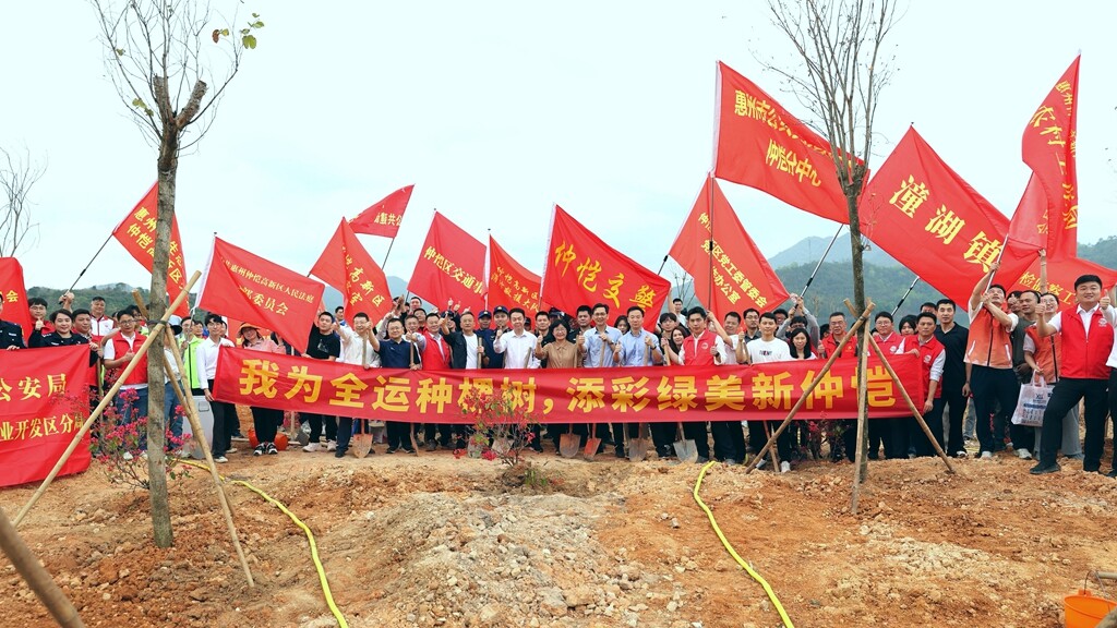 春風(fēng)拂綠,萬(wàn)物競(jìng)發(fā),正是綠化造林的好時(shí)節(jié)。3月14日,仲愷高新區(qū)潼湖觀洞湖森林公園內(nèi)一片繁忙而有序的景象。遠(yuǎn)處,群山環(huán)抱,綠水繞流;近處,一塊寫(xiě)著“我為全運(yùn)種棵樹(shù),添彩綠美新仲愷”的橫幅高掛,各區(qū)屬及駐區(qū)單位的紅色大旗鮮艷奪目!吧鷳B(tài)綠”與“熱情紅”構(gòu)成一幅如詩(shī)如畫(huà)的“綠水青山”美景。這是仲愷高新區(qū)2025年全區(qū)推進(jìn)綠美廣東生態(tài)建設(shè)暨三級(jí)林長(zhǎng)植樹(shù)活動(dòng)的現(xiàn)場(chǎng)。