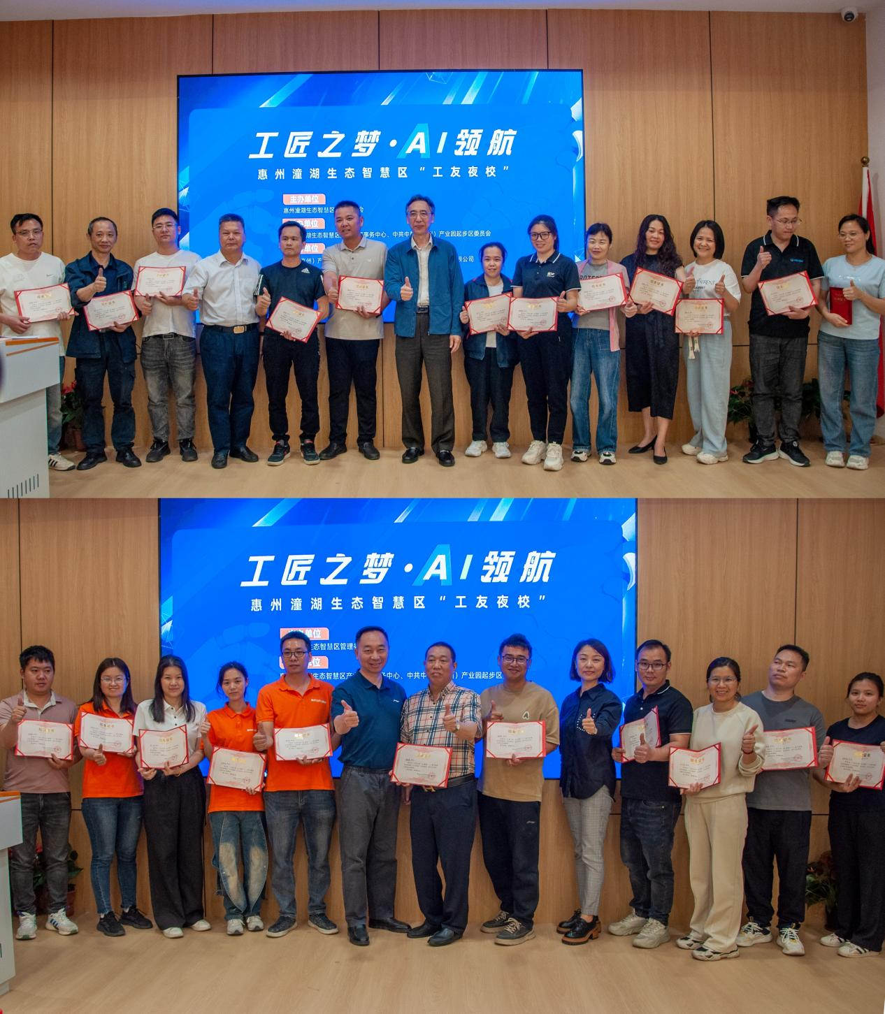 4月16日,惠州潼湖生態(tài)智慧區(qū)首期“工友夜!钡8次課程順利結(jié)課。為積極響應(yīng)2025年惠州市政府工作報告中提出的“人工智能+”行動計劃,惠州潼湖生態(tài)智慧區(qū)面向區(qū)內(nèi)企業(yè)舉辦了“工友夜!,這場持續(xù)40天的技能升級培訓(xùn),以工匠之夢·AI領(lǐng)航為主題,構(gòu)建起“政策解讀—AI賦能—技能躍遷”的全鏈條學(xué)習(xí)生態(tài)。自3月6日開講以來,“工友夜!8次課程共吸引園區(qū)內(nèi)80余家企業(yè)、近480名職工參與。