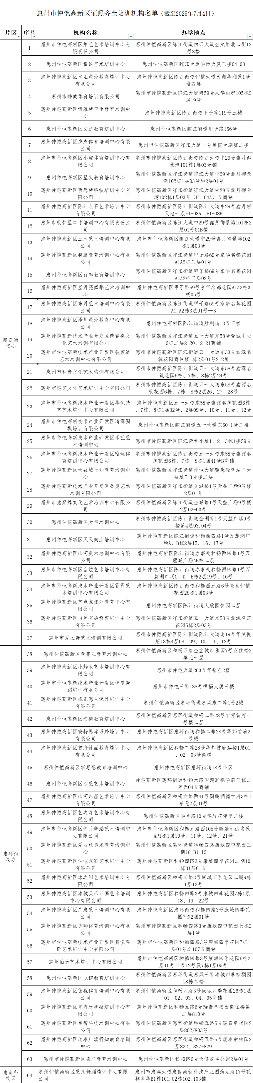據(jù)了解,仲愷高新區(qū)教育文化衛(wèi)生健康局將對(duì)證照齊全培訓(xùn)機(jī)構(gòu)名單實(shí)行動(dòng)態(tài)管理,不定期更新。符合辦證條件的校外培訓(xùn)機(jī)構(gòu),可盡快向該局申請(qǐng)辦學(xué)許可證。廣大家長(zhǎng)可關(guān)注最新名單,為孩子選擇合規(guī)的培訓(xùn)機(jī)構(gòu)。
