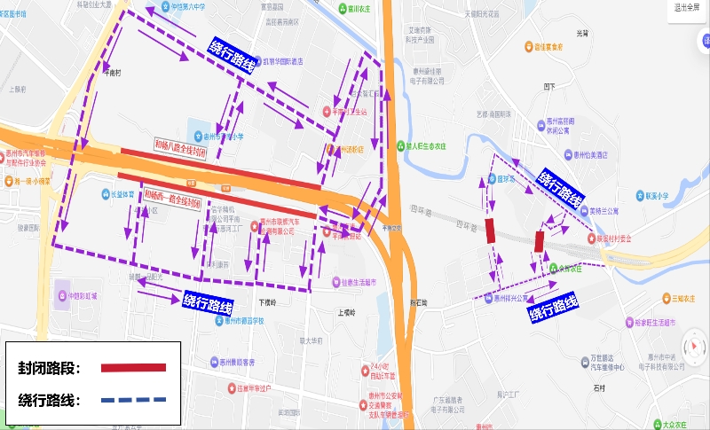 交通管制期間,行人及車輛請通過和暢西二路、長福嶺路、和暢六路、仲愷大道、金時發(fā)大道等道路繞行。