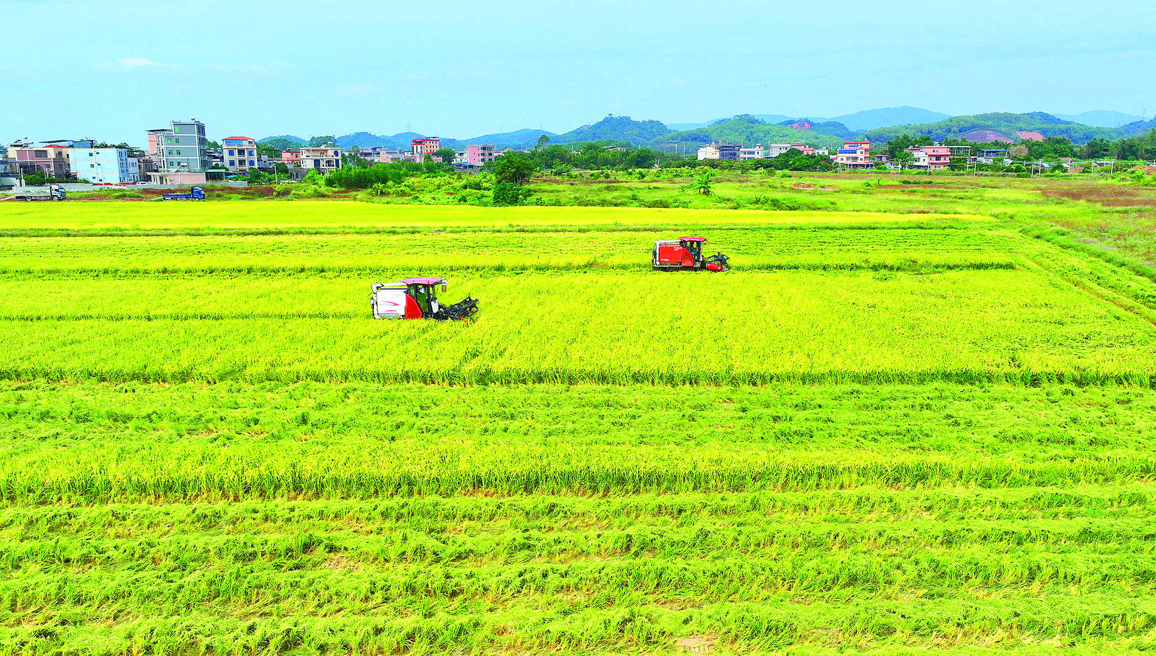 冬日暖陽(yáng)下,仲愷高新區(qū)潼湖鎮(zhèn)新光村連片的稻田里,收割機(jī)轟鳴作響,金黃的稻穗被整齊地卷入機(jī)艙,轉(zhuǎn)眼變成顆顆飽滿(mǎn)的稻谷。