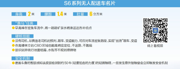 此次亮相的S6系列無人車,擁有2米車高、1.4米車寬、6立方米容積的實用車身,集成了多項首次在低速無人車行業(yè)應用的硬核技術(shù),在賽事期間承擔了部分補給物資轉(zhuǎn)運工作。發(fā)車時,無人車配套云端后臺,倉庫和補給站點工作人員可同步在小程序上查看無人車的規(guī)劃路線、預計到達時間,協(xié)助高效接收物資!叭肆φ{(diào)度壓力明顯減輕,響應速度也更快!辟愂潞笄谪撠熑嗽u價。