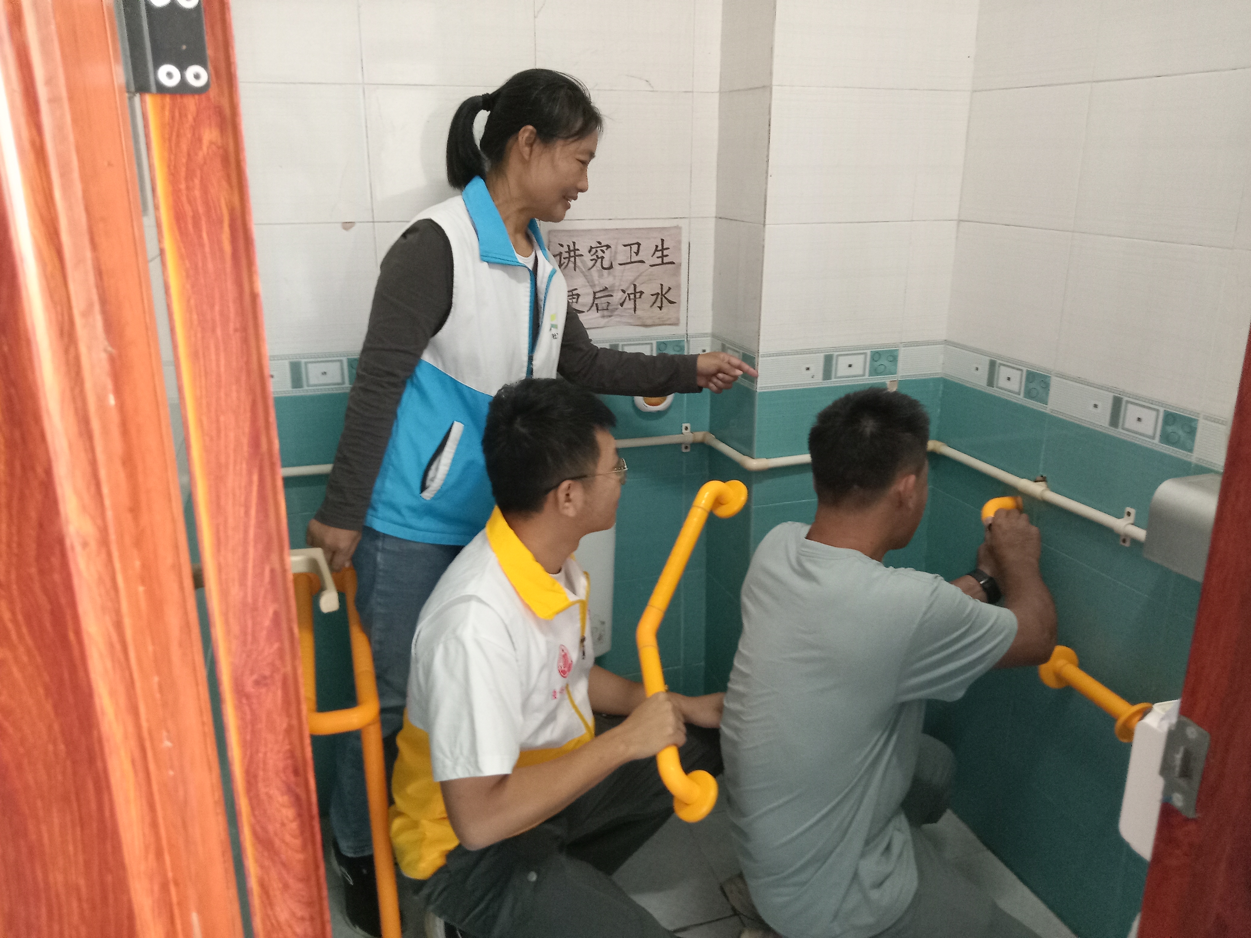 作為項(xiàng)目試點(diǎn),潼僑鎮(zhèn)率先發(fā)力,于2025年1~4月啟動(dòng)首批改造工作。鎮(zhèn)社工站聯(lián)合民政、殘聯(lián)等部門,對(duì)轄區(qū)91個(gè)公共場所開展拉網(wǎng)式排查,精準(zhǔn)識(shí)別46個(gè)改造點(diǎn)位。針對(duì)高齡老人居家安全需求,免費(fèi)為50戶特殊困難老人安裝65個(gè)無障礙廁所扶手,同步開展防跌倒知識(shí)培訓(xùn),提升家庭照護(hù)能力!白ブ芊(wěn),安裝得特別牢固!奔易S冠社區(qū)的李奶奶年過八旬,因腿腳不便造成如廁困難,衛(wèi)生間新裝的扶手幫她解決了難題。