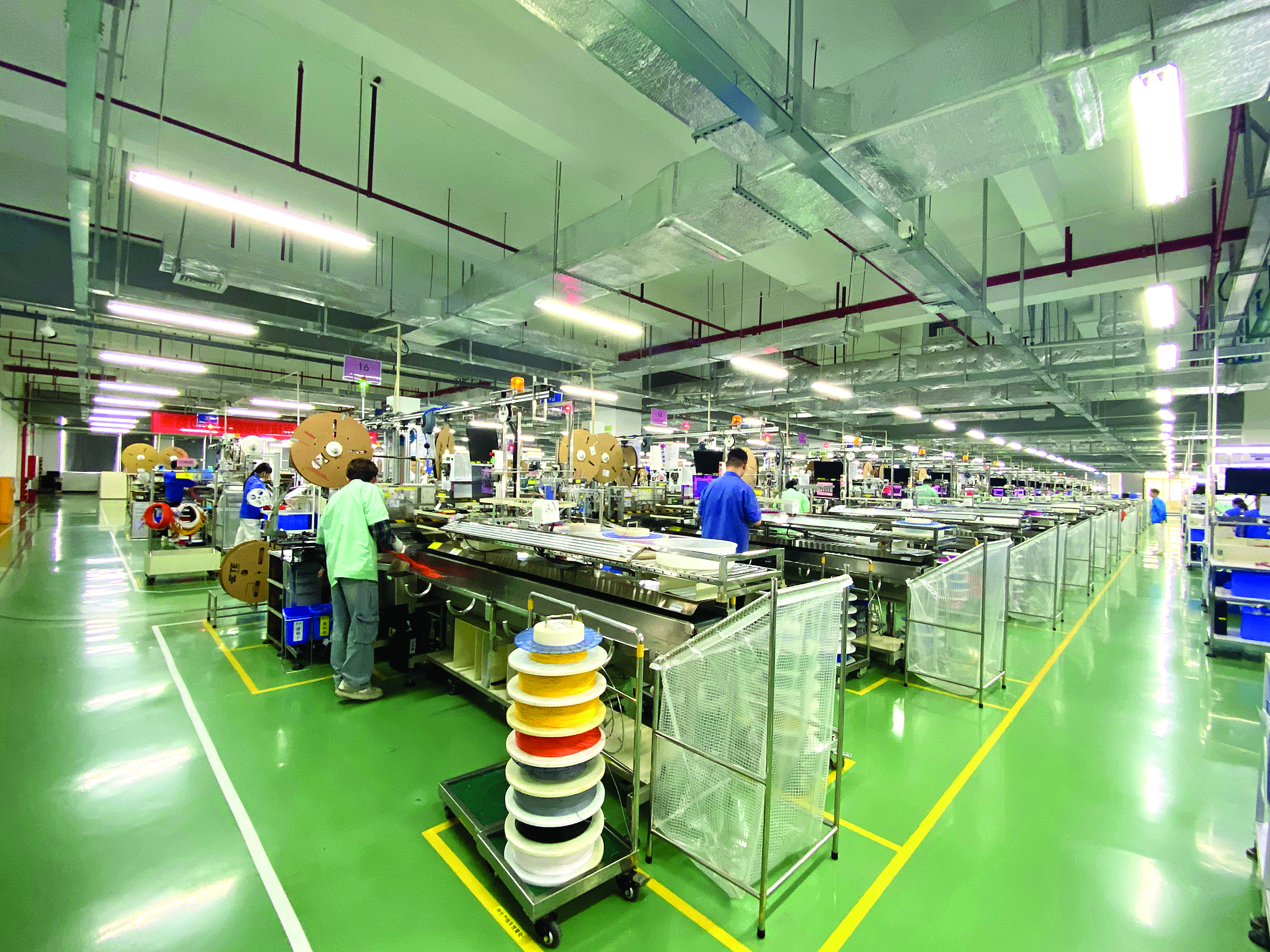 走進(jìn)住廣電裝高壓線束生產(chǎn)車間,AGV小車沿著既定路線自動運送物料,機械臂精準(zhǔn)地進(jìn)行線束壓接。作為黨員的技術(shù)開發(fā)部部長李先武指著全自動繞線機自豪地說:“這條產(chǎn)線從設(shè)計到投產(chǎn),都是由黨員攻關(guān)小組完成的!边@種“黨員包干到環(huán)節(jié)”的模式,確保了項目高質(zhì)量交付。