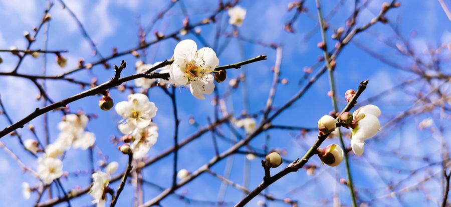 雖然第一批的梅花不算多,但靚麗的白色已經(jīng)藏不住了。漫步梅花山,盡管梅花只是星星點(diǎn)點(diǎn),但是枝頭飄白,盡顯清冷高雅。另外,許多梅花含苞待放,點(diǎn)點(diǎn)雪白爬上枝頭,為冬日帶來(lái)一抹特有的幽香。