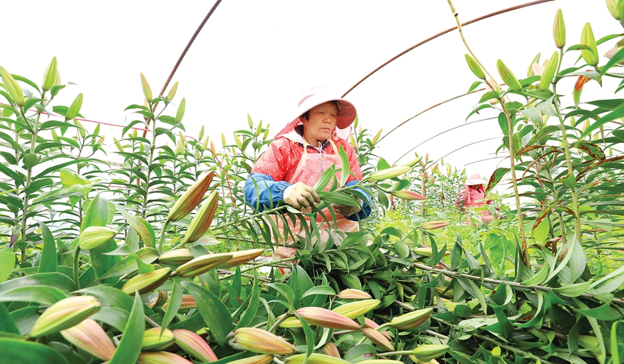 百合花產(chǎn)業(yè)的發(fā)展,帶動了塘尾村及周邊勞動力的就業(yè),最多的時候有30多名本村及周邊村民在基地務工,促進了村民增收!拔以谶@里做了3年工,在這里干活比打零工穩(wěn)定,收入也不錯!睆埌⒁虡泛呛堑卣f,百合花出貨時節(jié)正是農(nóng)閑時候,干活一天可收入150元,臨近春節(jié)加班忙出貨,預計一個月收入近6000元。