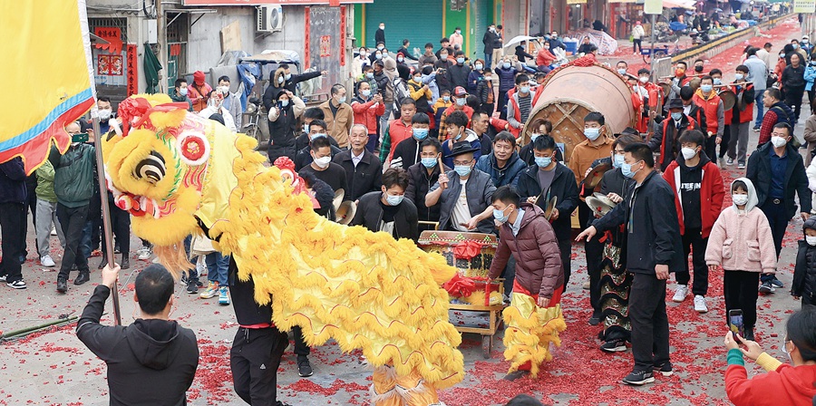 舞獅也是當(dāng)?shù)貍鹘y(tǒng)文化的重要部分。