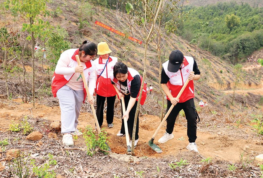 在羅陽街道梅花村山頭上,干部、群眾和志愿者參加植樹活動。 惠州日報記者鐘暢新 攝