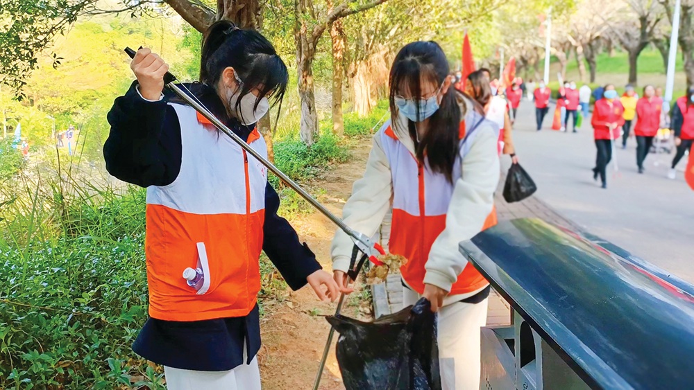 啟動儀式后,干部群眾在東山公園綠道開展撿跑活動。大家手拿塑料袋和長夾,邊跑邊撿,將沿途路面、角落里的煙頭、紙巾、瓶蓋等垃圾全部撿到垃圾袋中,并向周邊群眾宣傳健康生活方式和城市文明理念。在這片春意盎然的景色里,志愿者撿跑的身影格外顯眼,構(gòu)成了全民參與共創(chuàng)文明城市的美好圖畫。