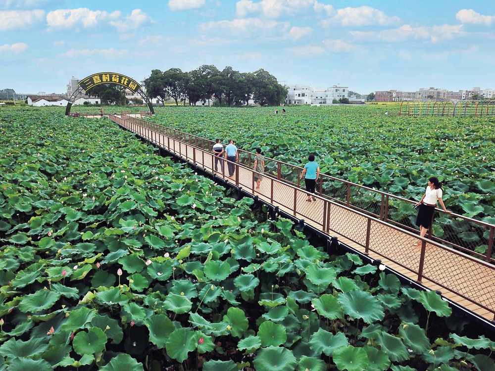 石壩鎮(zhèn)三嘉村發(fā)展荷花種植業(yè)帶動鄉(xiāng)村旅游。