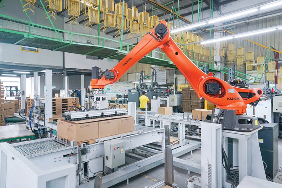如今,該公司已擁有200多臺(tái)自動(dòng)機(jī)械臂,實(shí)現(xiàn)了多道工序的自動(dòng)化作業(yè)!耙赃@條生產(chǎn)線為例,它生產(chǎn)的小推車除了零件分裝外,在取樣、焊接、裁剪、組裝、沖壓等環(huán)節(jié)都已經(jīng)實(shí)現(xiàn)了機(jī)械臂無人化生產(chǎn)!绷_崇光說,該公司一直在推進(jìn)自動(dòng)化改造,“到2025年,我們將在生產(chǎn)線部署超500臺(tái)機(jī)械臂!