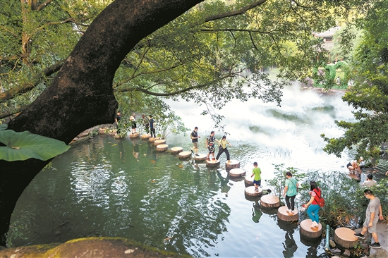 在五礦哈施塔特文旅小鎮(zhèn),游客可以全場景沉浸式體驗(yàn)演藝項(xiàng)目《女王的盛宴》;在羅浮山景區(qū),感受流光溢彩的3D夢幻水秀;在上良村民宿,打卡位于山湖之間的網(wǎng)紅書吧……近年來,游客能明顯感受到,在以往傳統(tǒng)景區(qū)的常規(guī)項(xiàng)目基礎(chǔ)上,博羅旅游體驗(yàn)項(xiàng)目越來越豐富。這得益于當(dāng)?shù)爻掷m(xù)推動文旅消費(fèi)項(xiàng)目升級,同時加大力度推動觀背村、明清九街、天虹商圈打造歷史文化街區(qū)、文化創(chuàng)意街區(qū)、夜間消費(fèi)集聚區(qū),吸引并留住游客。