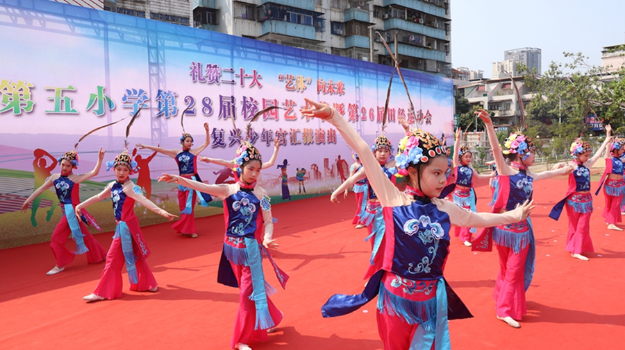 “少年智則國智!少年富則國富!少年強則國強!”日前,充滿朝氣的聲音在博羅縣第五小學(xué)上空久久回蕩,該校第28屆校園藝術(shù)節(jié)暨26屆田徑運動會復(fù)興少年宮匯報演出正在上演。舞臺上,孩子們用悠揚的歌聲、輕快的舞蹈表達內(nèi)心的喜悅,充分展示出博羅縣“復(fù)興少年宮”工作的豐碩成果。