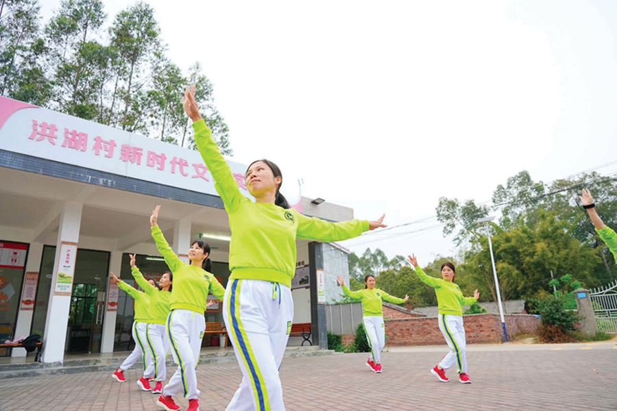 麻陂鎮(zhèn)洪湖村村民在排練節(jié)目;葜萑請笥浾邨罱I(yè) 攝