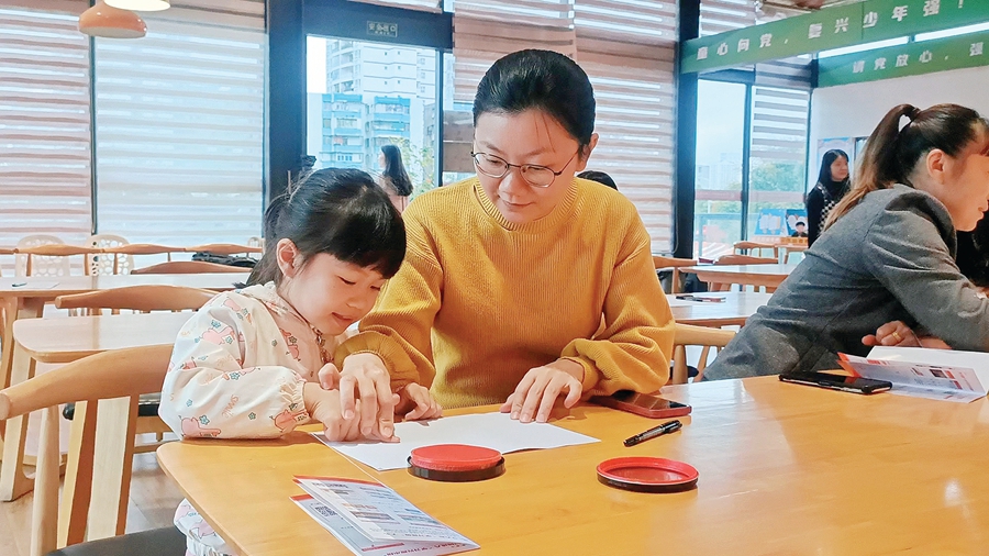 活動(dòng)中,孩子和家長(zhǎng)一起繪畫(huà)大熊貓。