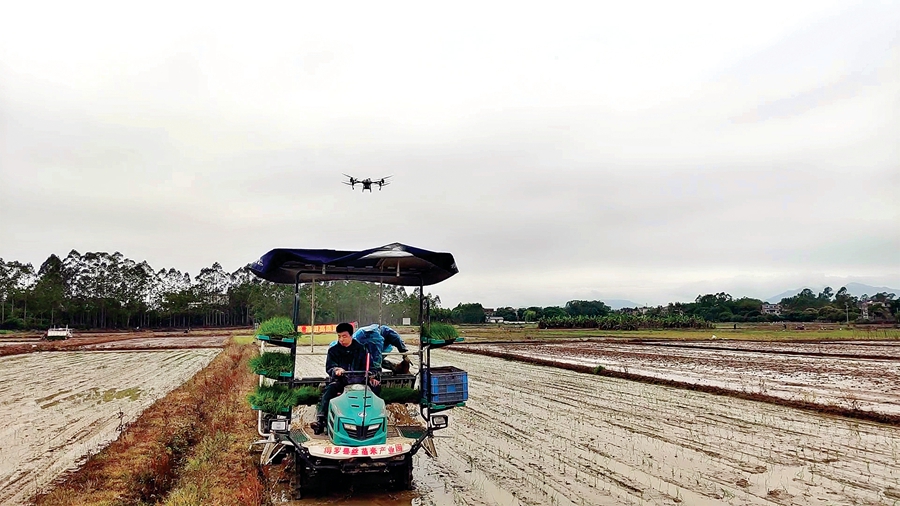 插秧機(jī)播種、無人機(jī)施肥、農(nóng)技人員送技下鄉(xiāng)……在博羅縣石壩鎮(zhèn)羅洞村的田間地頭,泥土的芬芳撲鼻而來,一派生機(jī)勃發(fā)、熱火朝天的春耕生產(chǎn)景象。