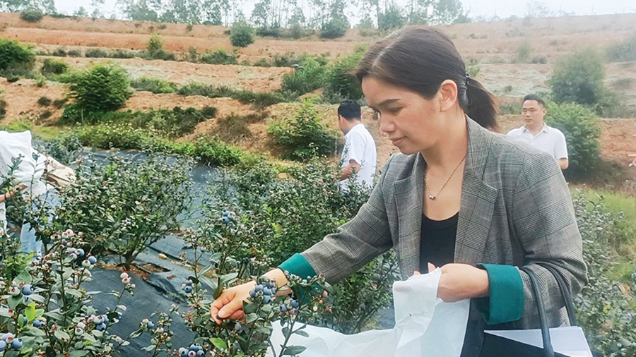 2022年,該莊園的首批藍莓掛果上市。在銷售鮮果的同時,莊園還接待了上千名從社交媒體上慕名而來的游客。“隨著文旅行業(yè)的復蘇,今年預計會有更多游客前來采摘和游玩!惫迳f,除了入園采摘外,該莊園還在持續(xù)布局深加工產(chǎn)業(yè),提高藍莓的附加值,目前已經(jīng)研發(fā)了藍莓紅酒等產(chǎn)品。