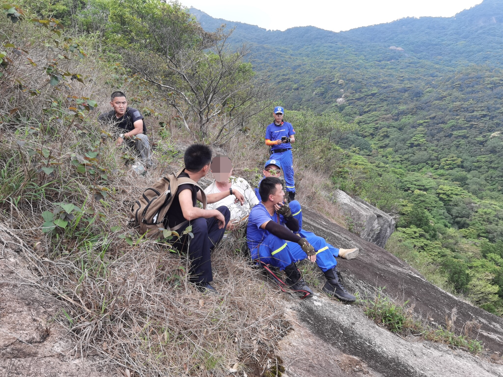 接報(bào)后,羅浮山派出所值班副所長(zhǎng)楊日林高度重視,立即向上級(jí)匯報(bào),組織值班人員研究制定救援方案,并率隊(duì)從羅浮山自然保護(hù)區(qū)入口開車直奔分水嶺開展搜救工作;羅浮山所另一組搜救人員聯(lián)合藍(lán)天救援隊(duì),攜帶能量補(bǔ)給品,迅速接力開展救援。