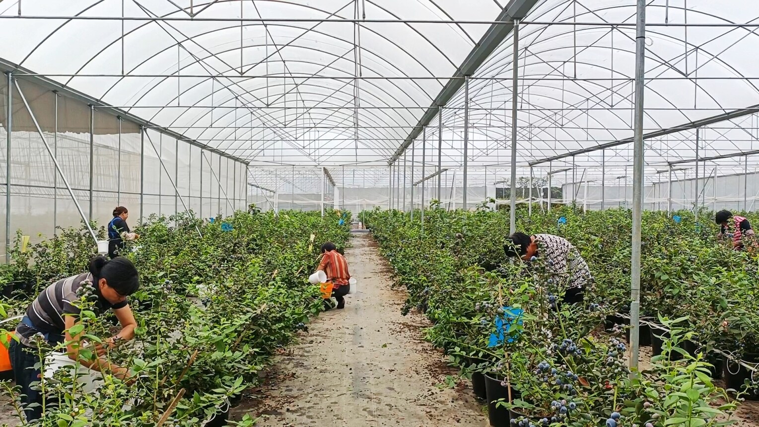 藍莓園一派熱火朝天采收景象。