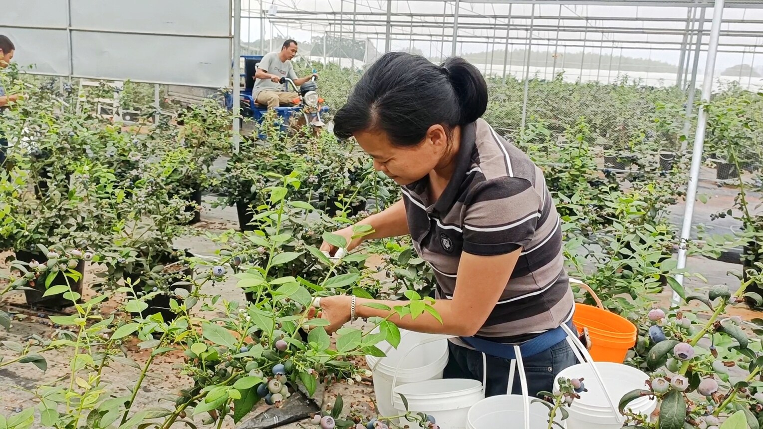 項目的落地,也為周邊將近90名村民帶來了“家門口”就業(yè)的崗位。連月來,適逢采收期,藍莓園里務(wù)工的村民達到約100人。家住長寧鎮(zhèn)圩鎮(zhèn)的廖秀文便是其中一個。每天清晨七點,她便騎上電動車,前往博羅智源設(shè)施藍莓園務(wù)工!皝磉@邊幫著剪剪果,一天上班8個小時就能掙100多,像我這個年紀(jì),去不了廠里上班,這個收入已經(jīng)很不錯了!绷涡阄男χf道。