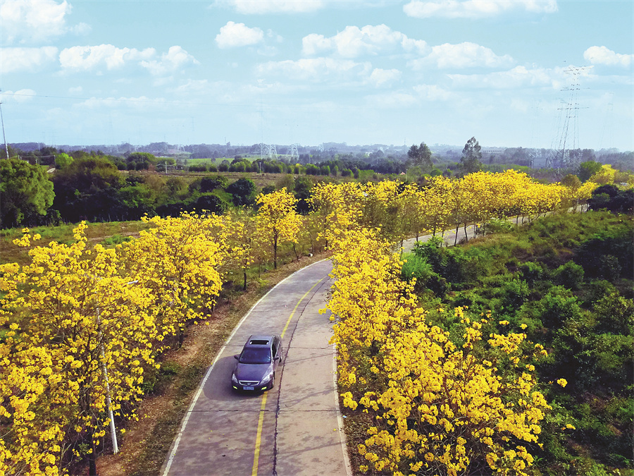 楊僑黃花風(fēng)鈴木景觀村道。 惠州日報記者鐘暢新 攝