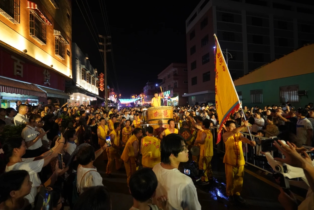 福明美食商業(yè)街揭牌亮燈儀式,非遺龍華大鼓演出。