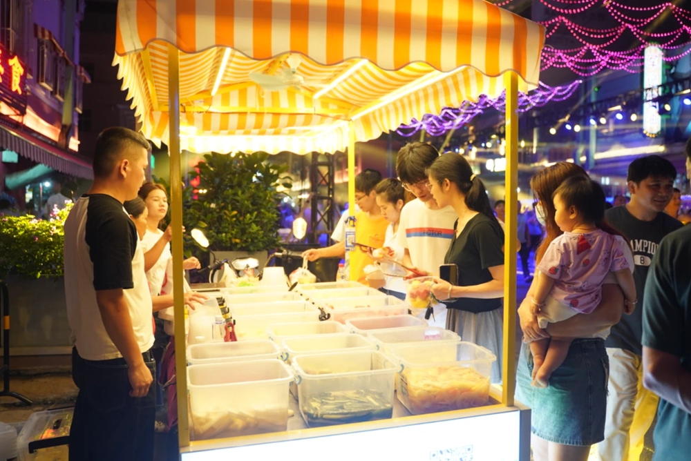 醒獅表演、龍華大鼓、燈光秀表演……6月1日晚,博羅縣福田鎮(zhèn)坳嶺村福明商業(yè)街人流攢動,熱鬧非凡。當(dāng)天,該商業(yè)街舉行揭牌亮燈儀式,60家特色美食、文創(chuàng)、特產(chǎn)小店進(jìn)駐美食節(jié)現(xiàn)場,吸引眾多市民前來游玩。