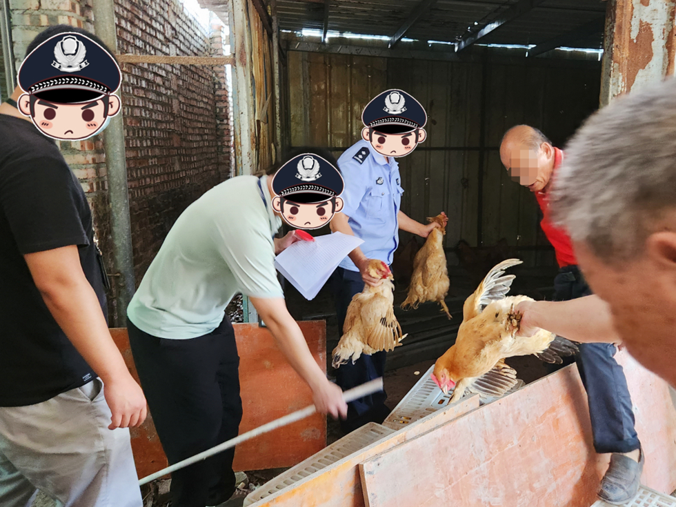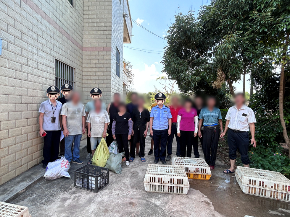 辦案民警將繳回的家禽返還給村民