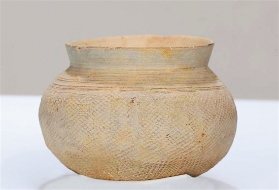 梅花墩窯址出土的陶罐,紋路清晰精細 莫樹華 攝