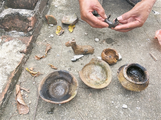 村民捐贈梅花墩窯址出土文物