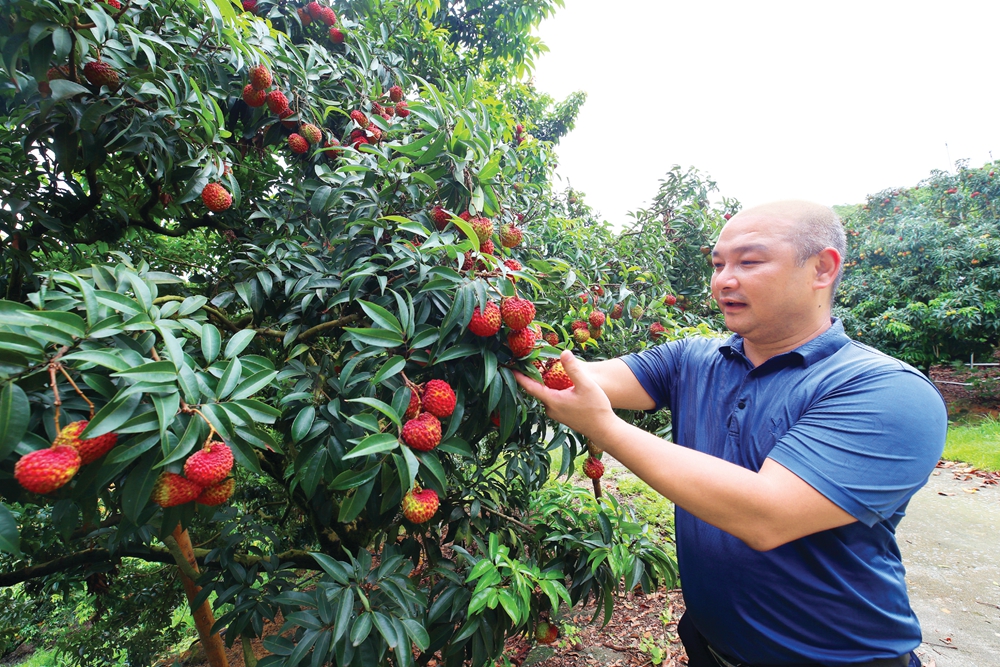 果農(nóng)查看荔枝生長情況。 惠州日報記者鐘暢新 攝