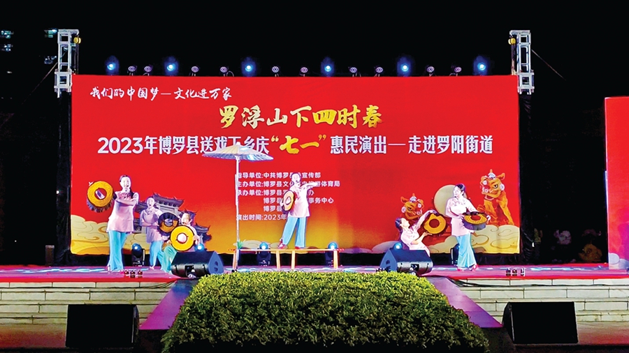 惠州日?qǐng)?bào)訊 (記者侯婉怡 通訊員陳勛)“我和我的祖國(guó),一刻也不能分割,無論我走到哪里,都流出一首贊歌……”日前,博羅縣縣城文化廣場(chǎng)歌聲陣陣,掌聲、歡呼聲不斷,“羅浮山下四時(shí)春”2023年博羅縣送戲下鄉(xiāng)慶“七一”惠民演出首站走進(jìn)羅陽街道。演出以本土戲充當(dāng)重頭戲,現(xiàn)場(chǎng),一個(gè)個(gè)融入了本土特色的非遺表演、紅色歌曲、流行舞等精彩節(jié)目輪番登場(chǎng),為廣大老百姓送去“家門口”的文化盛宴。
