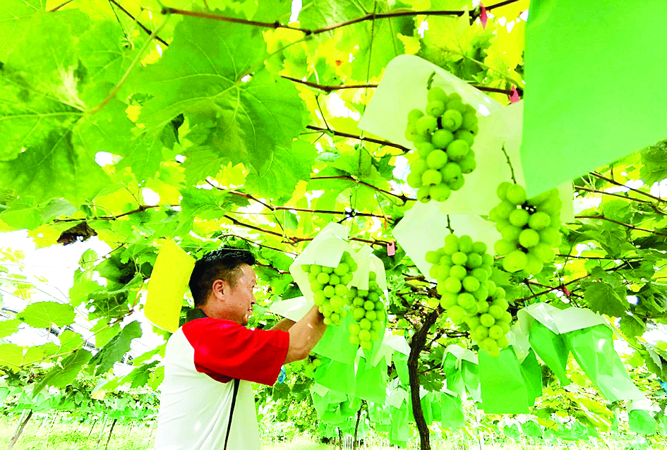 陽光玫瑰葡萄掛滿枝頭。 惠州日?qǐng)?bào)記者李燕文 黃桃 特約通訊員陳惠嫻 攝