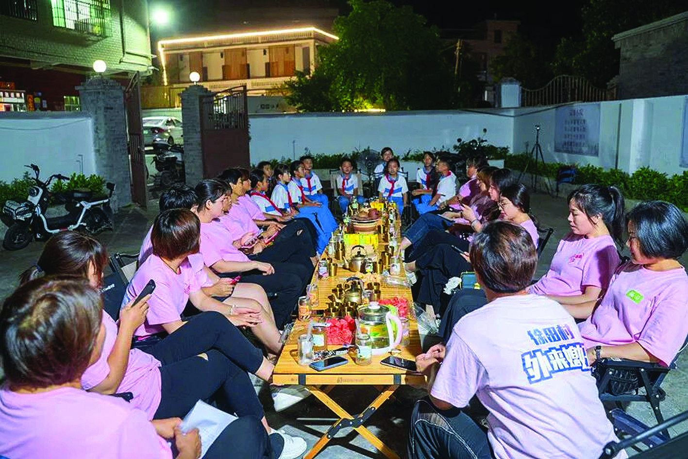 過政治生日、重溫入黨誓詞、公布“福燕歸巢”項目logo、開展鄉(xiāng)村音樂會……在議事點、議事小院,宣講、學(xué)習(xí)的方式靈活多樣。在徐田村的議事點,該村以形式多樣的黨建活動,激揚斗志,凝聚共識,激勵黨員、群眾在“百千萬工程”的實施中奮勇向前,為鎮(zhèn)域高質(zhì)量發(fā)展貢獻力量。徐田村干部馮燕清家的小院也是一處議事小院,幾個小桌拼成一張長桌,擺滿了茶凍、西瓜、哈密瓜等村民自發(fā)帶來的食品。村民圍坐在一起,齊唱村歌、談天說地。福田村亦是如此。福田村村民陳光輝說,自從有了議事小院、議事點,村里的氣氛一下子活躍起來!按箦侊埡吞撬簧献揽蔁狒[啦!”他說,大家一起唱村歌、講故事、剝地豆……十分融洽。