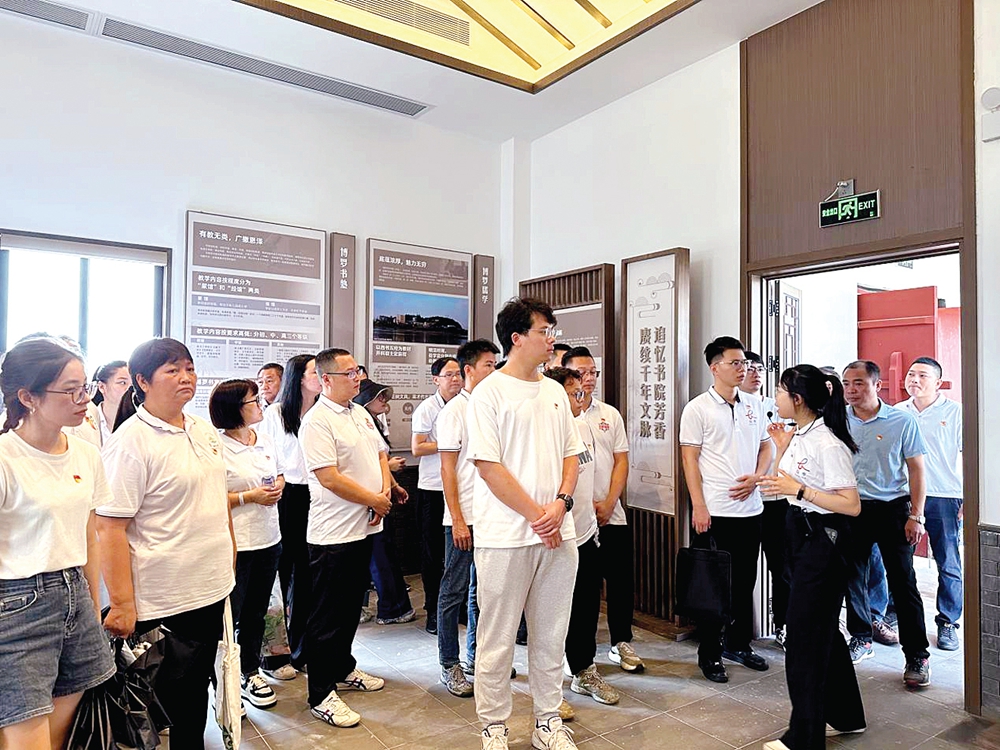 長(zhǎng)寧鎮(zhèn)青年黨員講解員介紹青云書(shū)室;葜萑?qǐng)?bào)記者李燕文 通訊員蔣美琴 攝