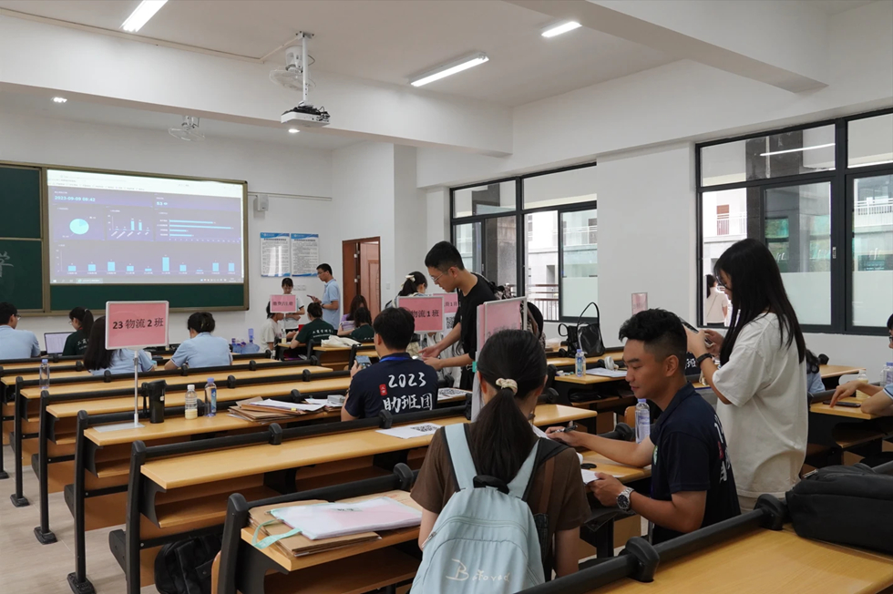 “同學(xué)你是哪個專業(yè)的?請到教學(xué)樓相應(yīng)的迎新教室進行報到!痹趶V場外的校門,一輛輛從惠州火車站、惠陽站等迎新站點駛來的大巴車,將新生與家長送抵校門前。新生剛下車,便有志愿者迎上前來,主動引導(dǎo)著家長與學(xué)生完成存包、報到、入住等事項。從空中俯瞰整個校園,在拉著大包小包行李的人群當(dāng)中,一抹志愿紅穿梭其中,成為了校園中一道亮眼的風(fēng)景線。